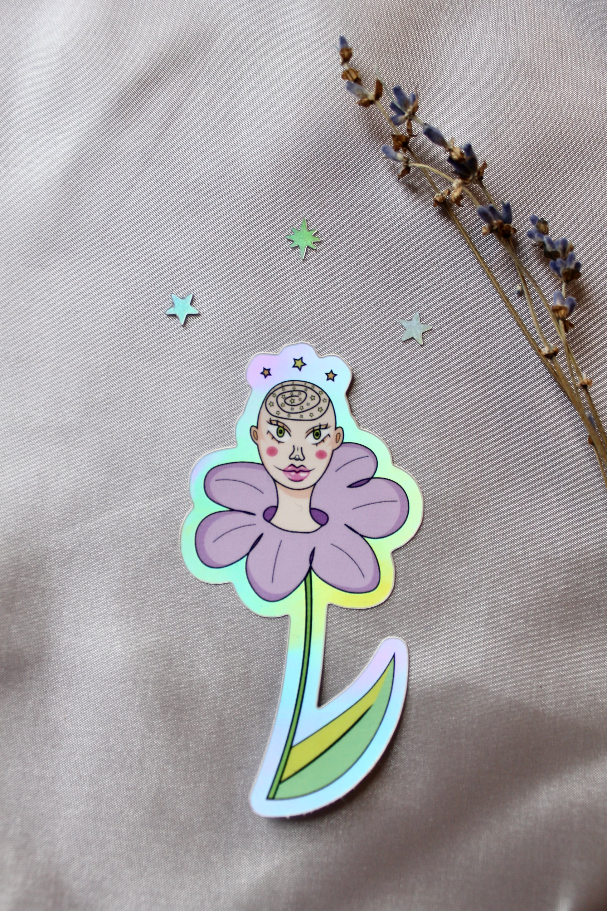 FLOWER HEAD HOLOGRAPHIC STICKER