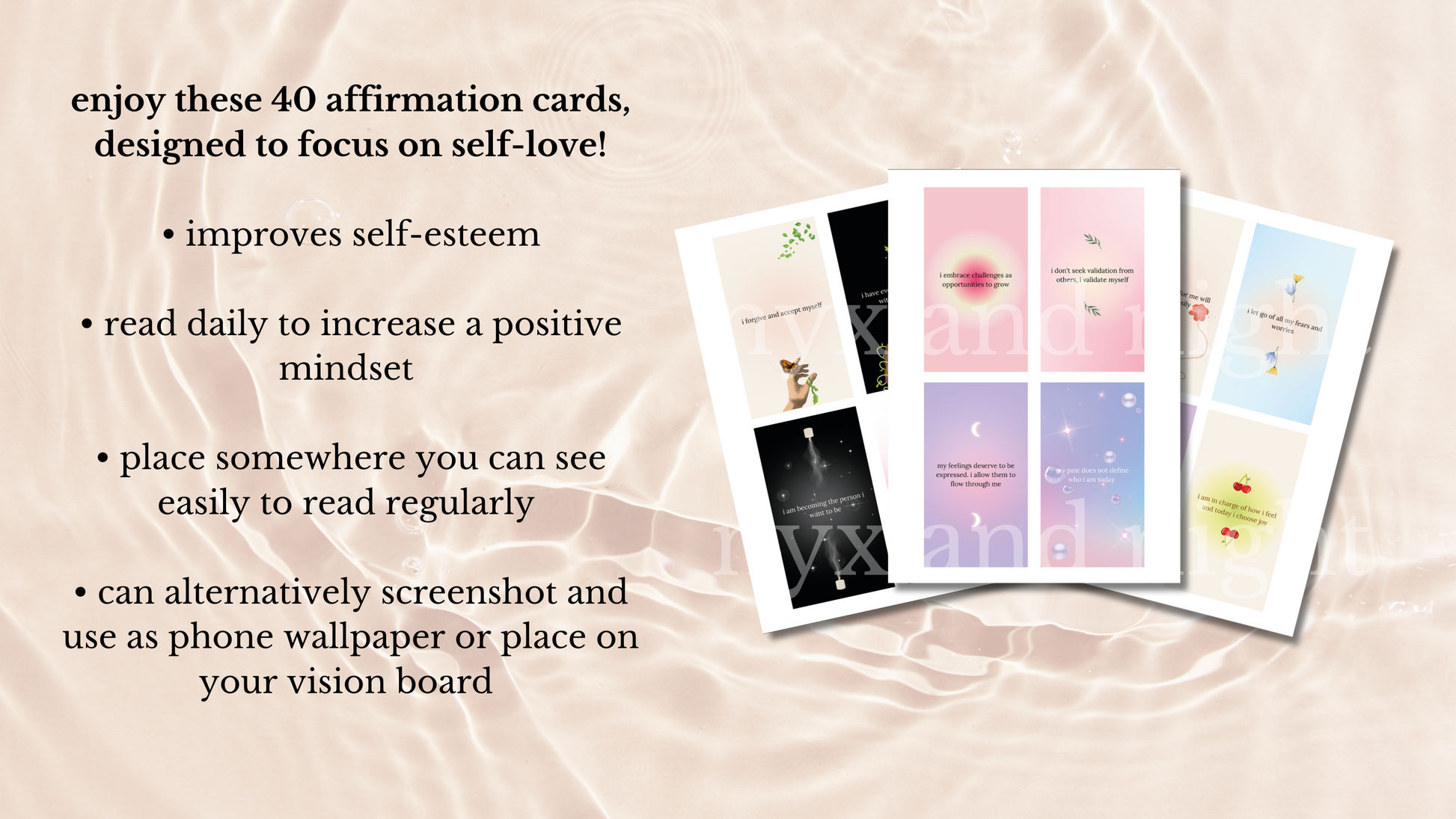 40 beautifully designed self-love affirmation cards!